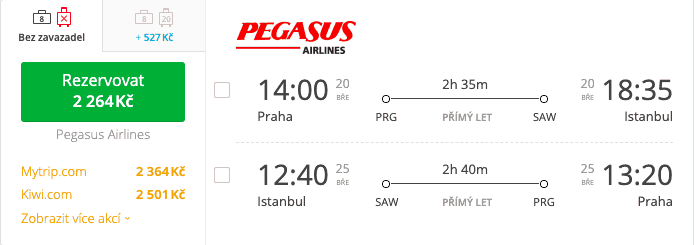 Spoj létá denně- akční termíny jsou do konce měsíce března a můžete si vybrat jakýkoli den odletu. Další termíny v našem vyhledávači.