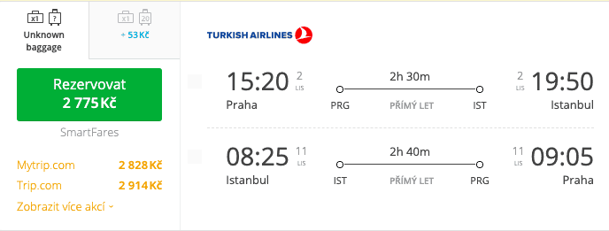 Letenky s Turkish Airlines od 2 775 Kč 2.11 až 11.11. 2020