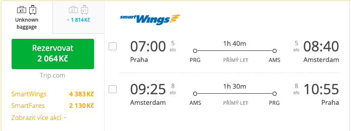 - zpáteční jízdenka z/na letiště Schiphol za 288 Kč (platnost 14 dní)