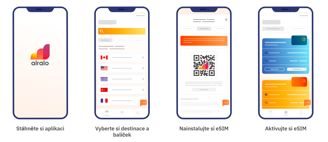 Pozor: K aktivaci eSIM potřebujete být připojeni k internetu! Čili zakoupení datového balíčku, naskenování QR kódu a aktivace eSIM udělejte ideálně před samotným odletem z ČR. Časová platnost eSIM se počítá od prvního připojení v zahraničí.