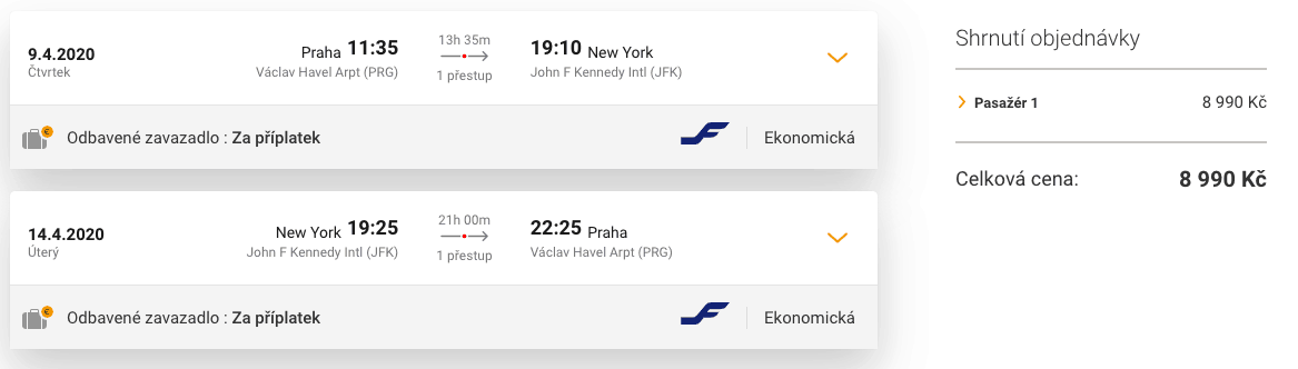 Finnair nabízí akční letenku Praha – New York za 8 990 Kč s garantovaným přestupem. Termín také přes Velikonoce.
