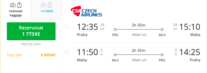 Využijte akce společnosti ČSA na zpáteční letenku (přímý let) z Prahy.