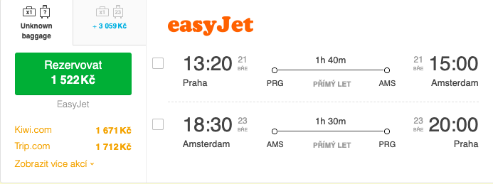 Využijte denní lety se společností easyJet z pražského letiště. Například zpáteční let vychází na 1522 Kč s odletem 21.3. 2023.