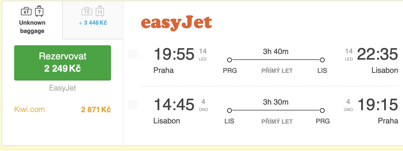 Pokud hledáte únik z chladné středoevropské zimy, Lisabon je ideální destinací. Díky letecké společnosti easyJet můžete v lednu vyrazit na levnou dovolenou. Například zpáteční letenka z Prahy do Lisabonu na termín 14. ledna až 4. února 2025 vyjde na pouhých 2 249 Kč. Co víc si přát než poznat krásy portugalského hlavního města za tak příznivou cenu?