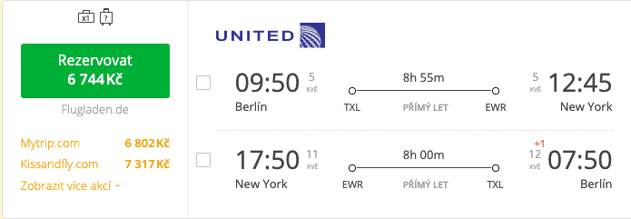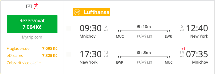 V našem novém rezervačním systému máme k dispozici levné a pohodné letenky do New Yorku za 6 744 Kč (267 EUR) s odletem z německých letišť Berlín a Mnichov.