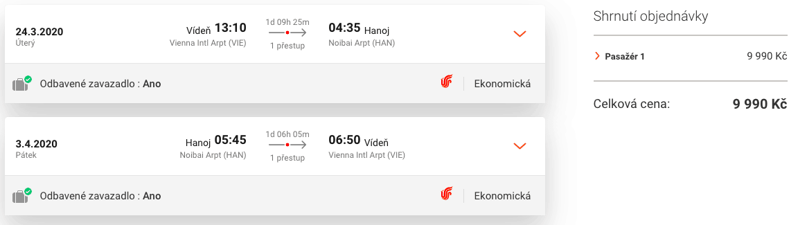 Letecká společnost Air China nabízí z Vídně levné lety do Hanoje. Zpáteční letenka vyjde na 9 990 Kč včetně odbaveného 23 kg zavazadla.