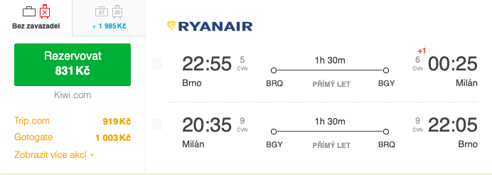 Nejlevnější letenky jsou nyní k dispozici z brněnského letiště. Zpáteční letenky začíná na 831 Kč včetně malého zavazadla.