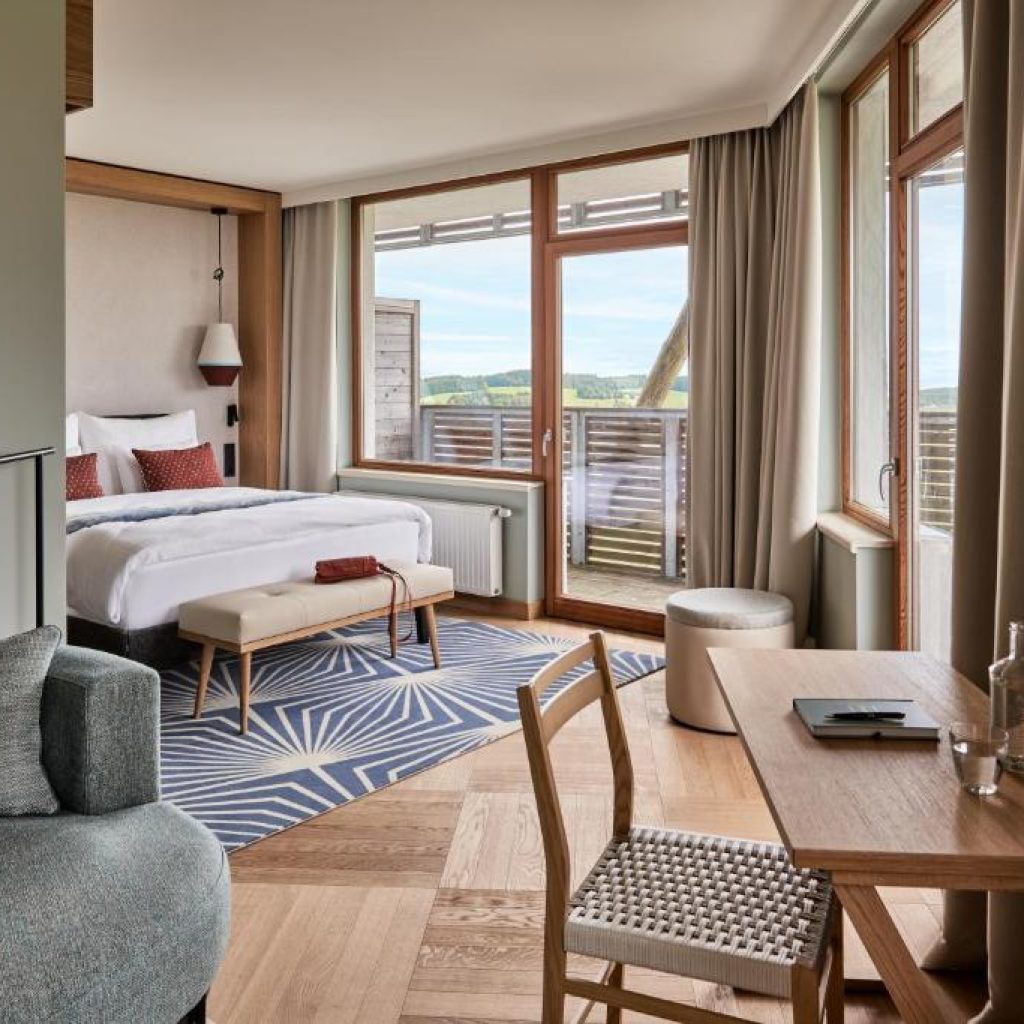 Nově navržené pokoje s dřevěnými podlahami a moderním zařízením.