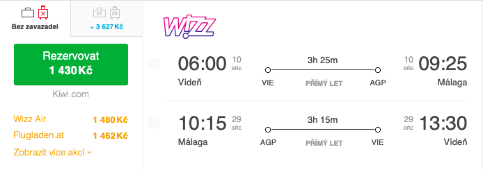 Pohled na akční letenku: