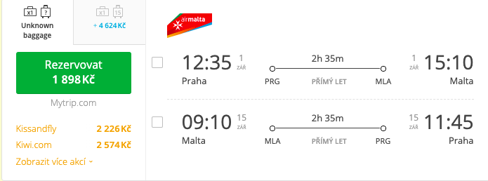 Využijte akce společnosti Air Malta na zpáteční letenku (přímý let) z Prahy v top prázdninové sezóně.