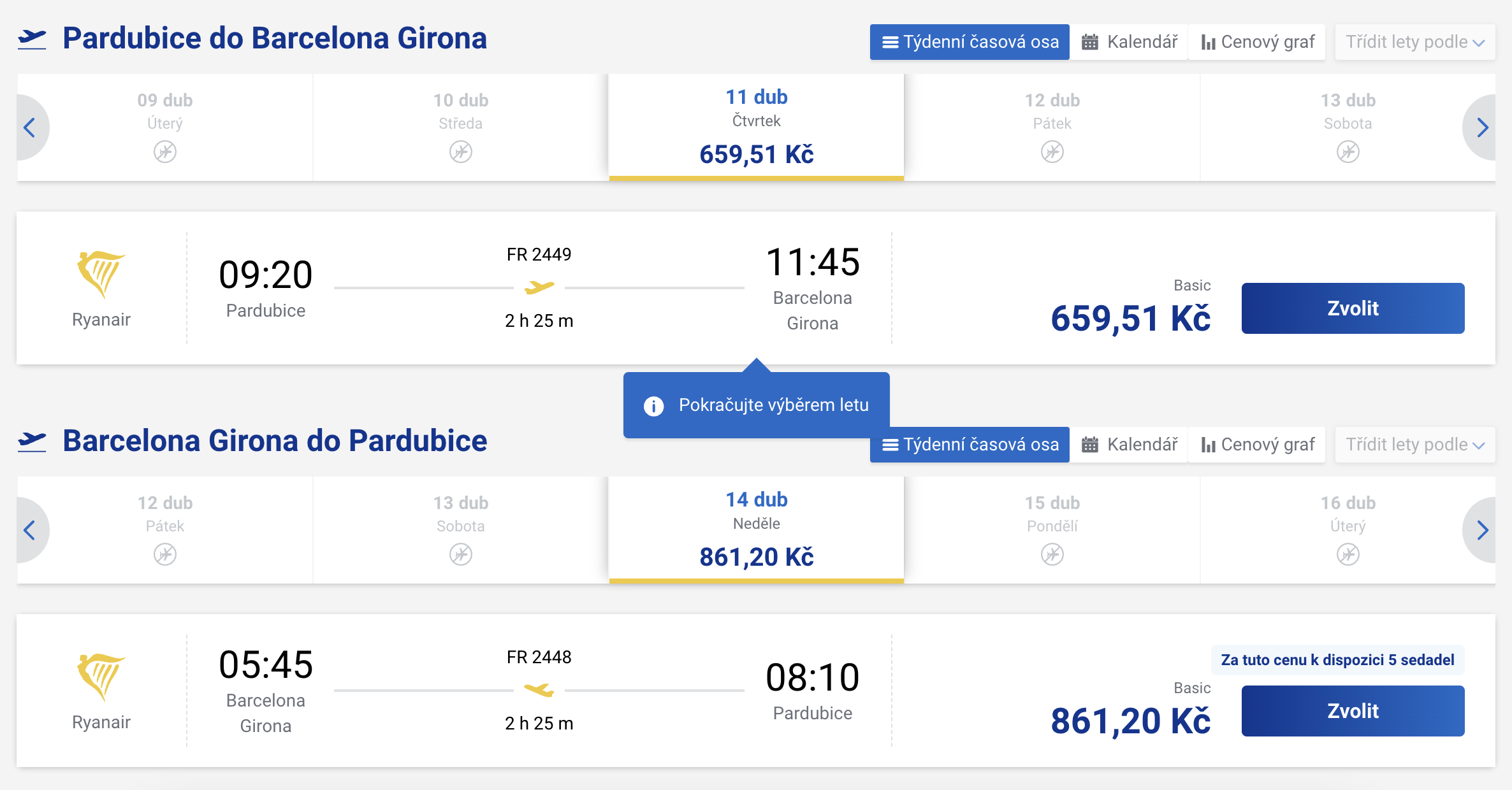 Letenky z Pardubic do Girony jsou v nabídce za cenu okolo 1500 Kč za zpáteční let. Vzhledem k tomu, že Pardubice mají dobré spojení s mnoha místy v České republice, může tato nabídka přilákat cestovatele z různých koutů země.